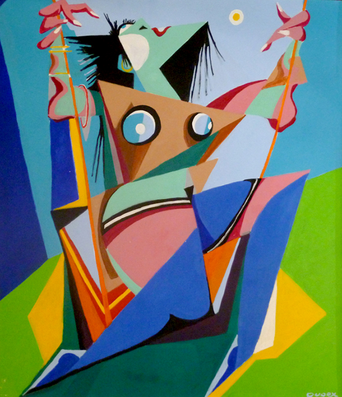 « La demoiselle à la balançoire 2 »gouache sur toile 110×130collection privée
